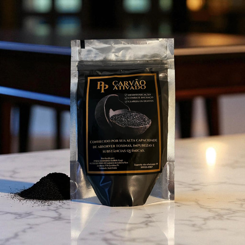 O Carvão Ativado da PP Global, feito a partir da casca de coco, é um poderoso agente desintoxicante natural. Auxilia na eliminação de toxinas, gases e impurezas do organismo, promovendo mais leveza e bem-estar. Também pode ser usado de forma interna ou externa para purificação e cuidados com a saúde.