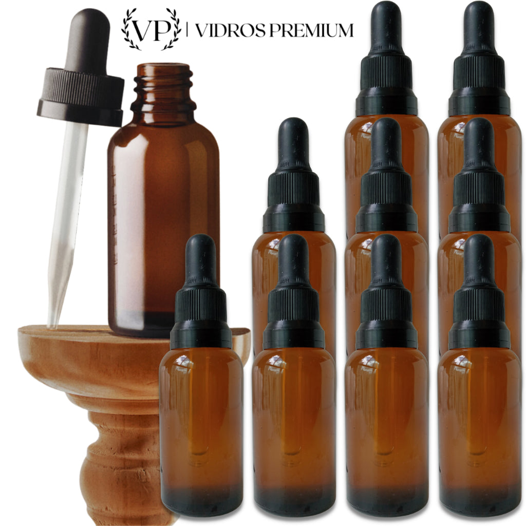 O vidro âmbar reduz a exposição aos raios UV, preservando a integridade e a estabilidade dos ativos presentes em óleos essenciais, extratos vegetais, florais, soluções ozonizadas e compostos farmacêuticos.